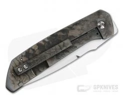 Blade: The Mula offers just under 3 inches of hair-popping cutting edge on a utilitarian drop point blade of American CPM-154. An upper swedge grind brings the tip down to a nice point for piercing if necessary. Some short jimping on the upper ramp offers added traction and a perfect thumb placement. Jimping extends onto the front flipper tab for decisive deployment on the caged bearing pivot. The hand-rubbed horizontal satin finish gives this piece a beautiful and truly custom look.