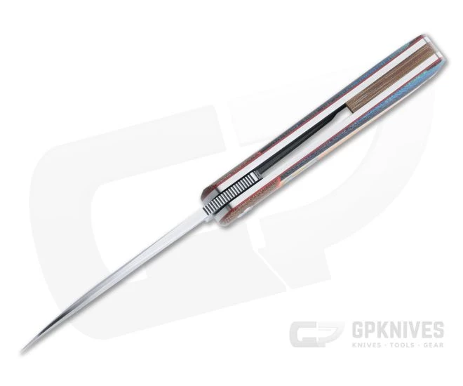 Enrique Pena is known for his remarkable fit and finish along with making knives that are peerless in both form and function. His knives often blend the modern and traditional and this Custom Swayback Top Flipper is a perfect example. This version comes with a hand rubbed satin finished, CPM-154 Wharncliffe blade and custom crosscut Mexican Blanket G-Carta handles with natural crosscut canvas bolsters and red liners.
