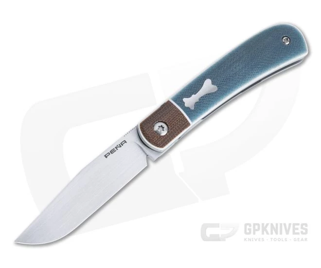 Enrique Pena is known for his remarkable fit, finish and function as well as the blending of traditional and tactical in his designs. This Pena Custom Trapper Front Flipper is no exception. The hand rubbed satin finished CPM-154 blade is razor sharp, perfectly centered and super smooth with a modern, titanium liner construction. The handles call back to the old time slip joints but are made with handsome and rugged Aqua Crosscut G-Carta covers, burlap Micarta bolsters and white liners.