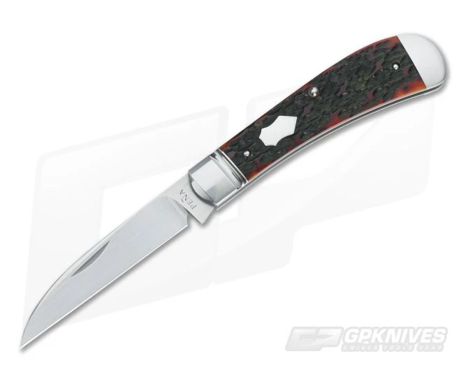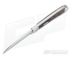 This Enrique Pena single blade pattern was built with a totally traditional look and feel. It has some of the cleanest lines of any slip joint we’ve handled and the rich colored bone contrasts nicely with the stainless frame. Comes packaged with a nylon zipper pouch stitched with the maker’s name on the front side. Brand new, direct from the maker at the 2016 USN Gathering.