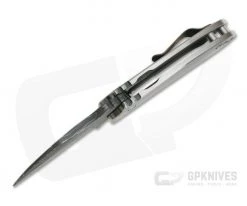 The Grindhouse Knives TMAx Flipper designed and built by Sam Jones is a bit thicker and beefier than the TMA delivering a compact yet seriously robust folder. A long flipper tab, hefty blade and ball bearing pivot deliver ultra-fast deployment with tank like lock up afforded by the titanium frame lock. This version comes with a striking Chad Nichols Stainless Iguana pattern Damascus blade, and Double Titanium frame with a fine satin finish.