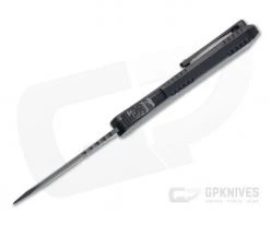 Blade: The aggressive Tanto blade delivers powerful piercing with balanced and durability. A coated with durable black DLC the blade has a handsome two-tone finish with satin flats and blasted and tumbled Battleworn grinds. The front flat has Predator countdown glyphs engraved on the flat. Double action automatic operation is fast, smooth, and decisive. Press the red carbon fiber stepped pyramid thumb slide up to open and down to close.