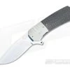 The Handle: Two thick bead-blasted anodized titanium liners form the core of the knife body while also creating the easily maneuvered liner lock mechanism. Handsome silver lightning strike carbon fiber handle scales meet absolutely seamlessly with decorative textured primary zirconium bolsters, all affixed to the liners via stainless steel torx screws. A custom machined titanium pocket clip with ball bearing retention has been attached for right-hand tip-up carry.