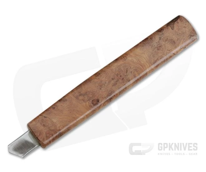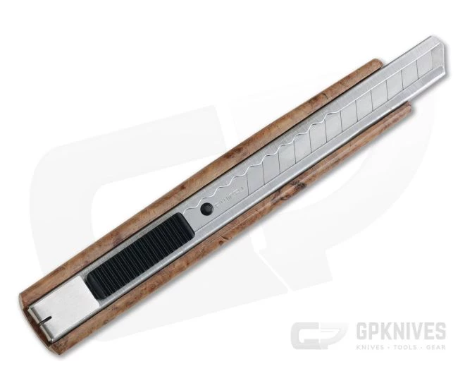 Japanese custom knife maker Hiroaki Ohta takes your standard snap blade utility knife and elevates it with a custom hard wood handle giving you the best of both worlds. Built on a stainless steel Tajima slide platform this version comes with a Burl Wood handle.