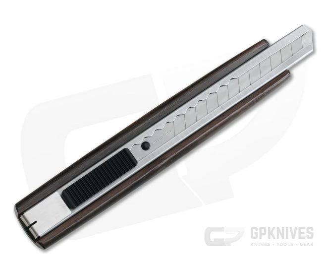 Japanese custom knife maker Hiroaki Ohta takes your standard snap blade utility knife and elevates it with a custom hard wood handle giving you the best of both worlds. Built on a stainless steel Tajima slide platform this version comes with an Ebony Wood handle.