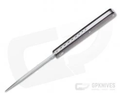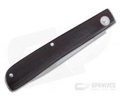 Blade: The 3 inch drop point blade is made from flat ground, satin finished, D2 tool steel and is ultra thin for optimal cutting performance. A very generous nail nick is provided for opening with a milled cutout in the liner allowing easier access. The knife opens on a traditional slip joint mechanism with a moderated half-stop (call it a pause) for added security while providing ease of operation paired with a moderate back spring tension.