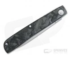 Handle: Beautifully striking Marbled Carbon Fiber handle scales are attached to polished stainless steel liners with matching pins. Half of the back spring rides proud to the liners and features decorative file work for a custom look and feel. The OLF has solid walk and talk and smooth operation. The slim construction of the OLF calls to mind a classic Bird & Trout knife but works well as an every day carry and utility folder.