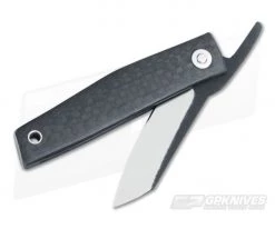 The Handle: Mesmerizing carbon fiber is the star of this show. Its waves of woven fibers light to dark are enough to get lost in. The carbon fiber scales are smoothed and contoured for a comfortable grip. A black micarta backspacer not only keeps it all together, but really ties into the whole design. A silver lanyard tube at the end of the handle is convenient for personalizing.