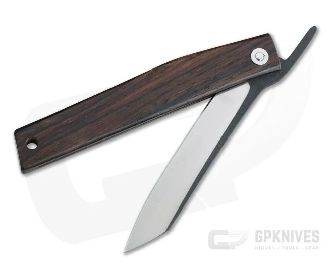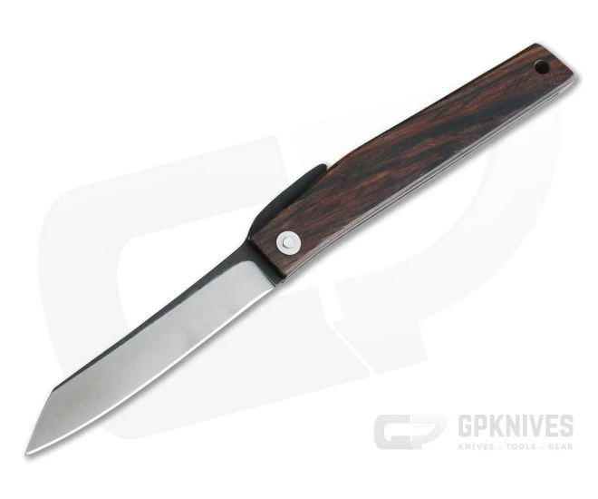 The OFF FK9 large Friction Folder from Ohta Knives features true Japanese craftsmanship with some of the finest materials on the planet. Mr. Hiroaki Ohta combines pleasing aesthetics with proper functionality in a way seldom found in the realm of friction folding knives. This version comes with a satin finished D2 tool steel blade and Cocobolo Wood handle.