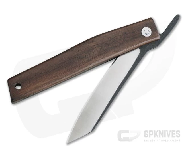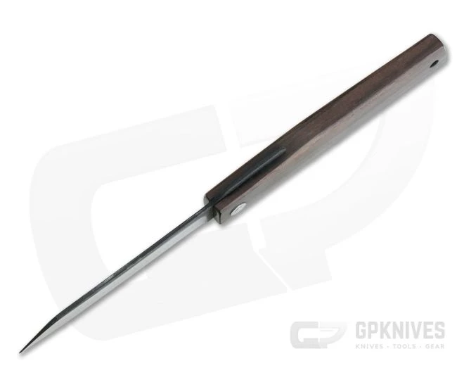 The OFF FK9 large Friction Folder from Ohta Knives features true Japanese craftsmanship with some of the finest materials on the planet. Mr. Hiroaki Ohta combines pleasing aesthetics with proper functionality in a way seldom found in the realm of friction folding knives. This version comes with a satin finished D2 tool steel blade and Ebony Wood handle.