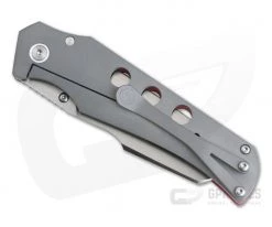 Handle: The clean, sweeping lines of the Scout make it visually appealing but the form is also functional. The ergonomics are superb and give the knife unparalleled security in-hand without the need for a large finger guard. The scoop on the spine places the thumb right over the pivot for increased power when cutting while the jimping delivers added security and traction. The classic Reeve Integral Lock is equipped with Mr. Guthrie’s proprietary tungsten insert. The GTI is fitted into the lock face and is incredibly hard, 90 HRC on the Rockwell scale, reducing lock wear greatly. The GTI lock is guaranteed against any lock wear that will induce lock rock or vertical blade play from normal use. This version comes with contoured handles with milled holes for weight reduction and traction. The lock side is full titanium while the front scale is beautiful Silver Shred Carbon Fiber with a contrasting red liner.