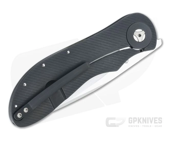 Handle: Made from texture milled titanium, the handles are simple, ergonomic and equipped with a dark matte finish. The rear frame forms an integral frame lock for safe use. Matching the titanium clip are concentric ring milled pivot collars for enhanced style. Ships in a zippered nylon pouch with Certificate of Authenticity.