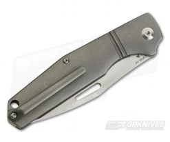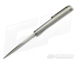 Handle: The full titanium handles are clean and ergonomic with a generous index guard, smoothed with faux “bolsters”. Internally milled pockets significantly reduce weight with no sacrifice in strength. The tumbled, blasted finish on the titanium provides a matte gray finish that is discreet for use. The stainless steel back spring delivers a snappy action opening and closing and a generous hole is included for lanyard attachment.