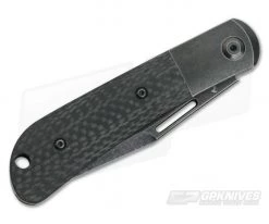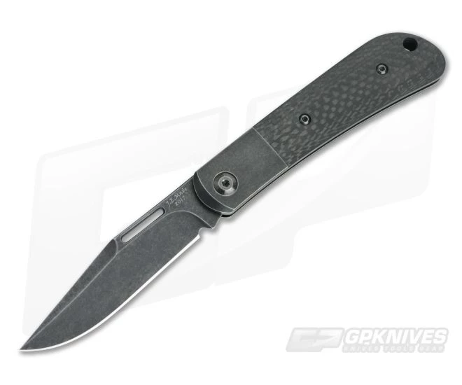 The Handle: The handles offer rugged, black stonewash finished Titanium bolsters with integral titanium liners with contoured Carbon Fiber scales. A large Torx pivot and two Torx screws secure the handles together with a beefy, stainless steel back spring for secure and snappy operation. All hardware and back spring have matching tumbled black finish. A large hole is provided for lanyard attachment.