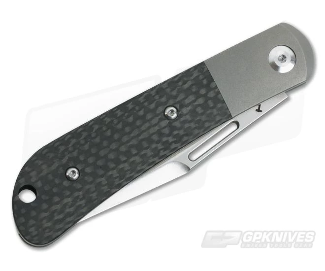 The Handle: The handles offer classy, bead blast finish Titanium bolsters with integral titanium liners with contoured Carbon Fiber scales. A large Torx pivot and two Torx screws secure the handles together with a beefy, stainless steel back spring for secure and snappy operation. A large hole is provided for lanyard attachment.