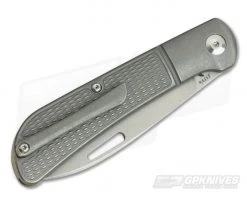 Handle: The full titanium handles are clean and ergonomic with a subtle dual guard and contoured shape for comfort. The handles are milled with smooth integral bolsters with a classic diamond texture milling used in place of traditional covers. The whole handle is finished with a matte grey blast and tumble finish. The stainless steel back spring delivers a snappy action opening and closing and an inline pin is included for lanyard attachment.