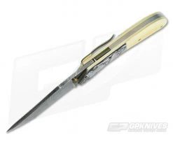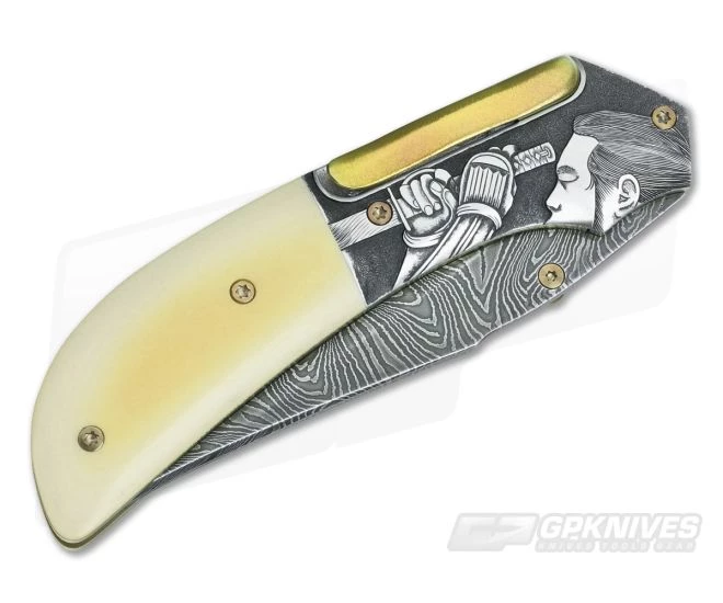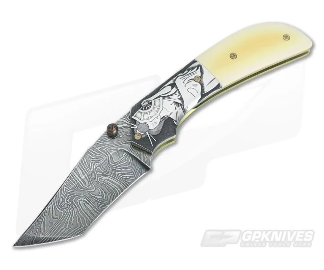 The Jody Muller Custom Folder with Samuri Themed Engraving is a one-of-a-kind handcrafted work of art. A true showpiece that will add an awe-factor to any collection, the mid-sized folder also features a hand-forged damascus blade and Westinghouse Micarta. Brand new directly from Jody Muller.