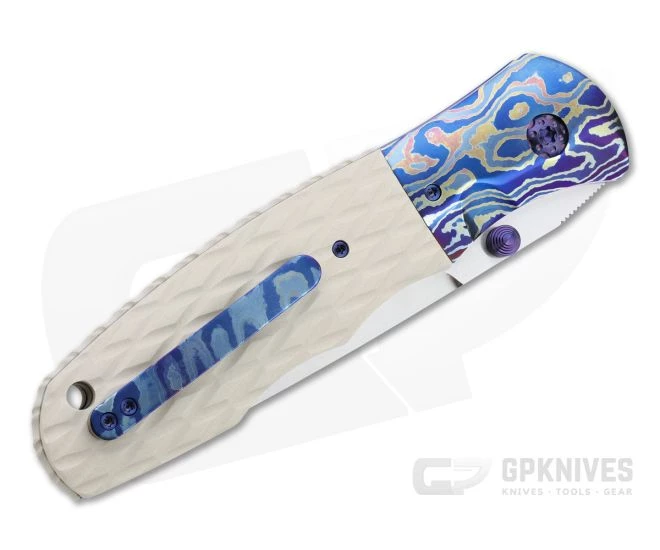John W. Smith is a tactical folding knife legend. His pieces can be hard to come by, and when they do come around they go fast! The reason: these custom pieces are a part of knife making history. Simple, refined, and flawlessly executed, a John W. Smith custom is a jewel in any collection. Mr. Smith developed the Nexus design for his personal use and now offers it to us! This piece has a hand rubbed satin, CPM-S45VN blade, 3 alloy Mokuti bolsters and clip, jeweled and anodized titanium liners with matching hardware and Ivory White Westinghouse paper Micarta with matching file worked back spacer.