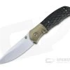 Handle: Gold anodized titanium liners support the marbled carbon fiber bolsters and handsome, diamond textured curly Koa wood scales. A matching gold titanium back spacer rides proud to the liners for a more contoured feel and features custom file work for a high-end look. Take a peek inside the liners, and you will see they are engine turned, a truly custom detail. The simple liner lock delivers solid and secure lockup and is scalloped for traction in operation. Custom gold titanium hardware completes the construction.