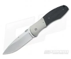 The Handle: Soft grey bead blasted titanium make up the liners, with one forming the solid lock up. The one that does lock has some custom notching to easily push the liner over and close the blade. On top are equally blasted titanium bolsters and some of the most uniquely textured carbon fiber scales you have ever felt. The dimpled texturing feels amazing and is in no way aggressive. Notching on the butt end of the handle adds to the overall feel in-hand as well. All titanium hardware was used on this piece including a tip down carry pocket clip. A perfectly formed black micarta backspacer rounds out construction.