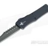 Marfione Custom Combat Troodon Hellhound Tanto out the front automatic knife is a substantial tool, popular among military, law enforcement and first responders. This knife is slender enough to keep on your person daily while the two-tone DLC blade appeals directly to collectors. The Troodon is named after a bird-like dinosaur from the Campanian Age and is ready to strike.