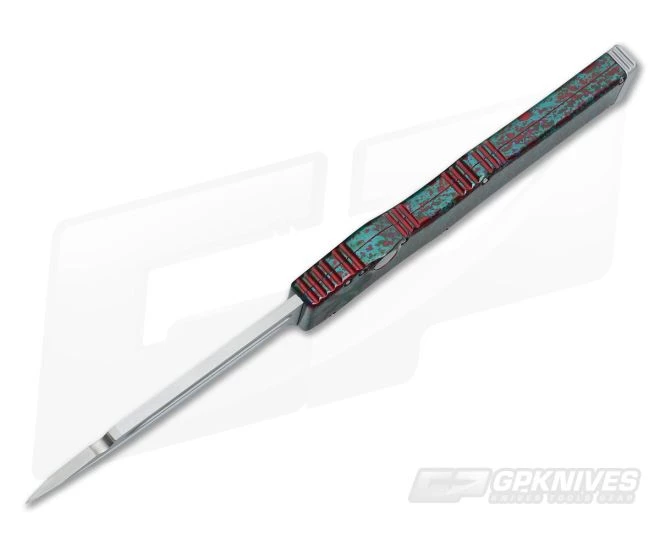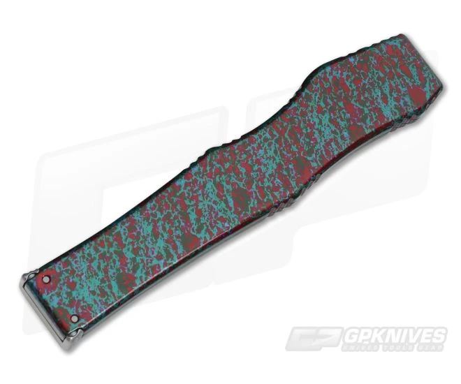 The Handle: Surprisingly light for its size, the aircraft alloy handle has been splash anodized a variety of greens and reds with the Marfione Talon logo laser engraving faintly accenting the top of the handle near the button. Jimping has been strategically placed in several areas around the handle to insure a solid grip on the otherwise smooth alloy surface. Micrtoech’s proprietary hardware has been used for assembly of this massive OTF. When fully retracted, you may read USA, A. Marfione, Halo V 08/2017 on the retraction tab.