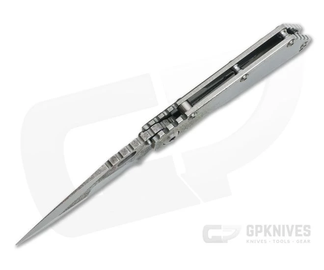 Handle:Â Both sides of the handle are made from full titanium with an integral frame lock that delivers rock solid lock up. This custom version comes with a beautiful clear orange peel textured finish and faded organic texture with gold accents near the pivot. The knife is completed with satin finished titanium hardware including the barrel spacers, chain ring bolt pivot and over-travel stop.