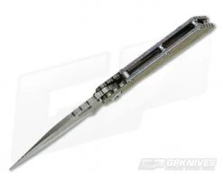 Blade: The Spear Point CPM 20CV blade is two-tone finished with machine satin on the dual hollow grinds and “Manhattan Project” orange peel texture on the flats and spine. The shallow hollow ground, false edge top delivers unstoppable piercing capability. The deep hollow primary grind ends in a razor sharp edge for optimal slicing performance. The top of the spine has jimping that extends to the frame enhancing traction. The blade opens smooth on phosphor bronze washers via the oval blade hole. The iconic Strider choil is signed M. Strider.