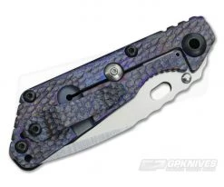 The Strider SnG model is one of his most popular every day carry models and this Mick Strider Custom SnG has the detailed fit and finish to elevate your EDC to the next level. This unique SnG sports a Nightmare Grind blade with Dragon Spine jimping a Concealed Carry integral G10 handle scale and hand textured and multi-color anodized titanium frame lock. Comes complete with a padded nylon zipper pouch with “SnG” rocker patch for carry and storage.