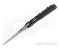 The Strider SnG model is one of his most popular every day carry models and this Mick Strider Custom SnG has the detailed fit and finish to elevate your EDC to the next level. This unique SnG sports a hollow ground Spear Point blade with a Flat, Custom Graphic, integral Aluminum handle scale and ‘Manhattan Project’ textured, multi-color anodized titanium frame lock with the same custom “Flying Skull” graphic. Comes complete with a padded nylon zipper pouch with “SnG” rocker patch for carry and storage.