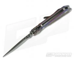 The Handle: Dual contoured titanium slabs are anodized and heavily textured for a cool look. It includes full titanium hardware including handle screws, standoffs and pivot. Open back construction delivers easy cleaning and maintenance. A right hand, tip-up only titanium pocket clip is outfitted with the same textured and anodized finish. Comes with a USA made, black nylon zipper pouch for carry and storage.