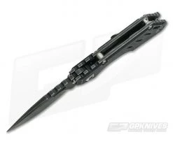 The Blade: The CTS-204P blade is PVD coated with dark CrN chromium nitride and tumbled creating the rugged “Grandpa” finish that gives the Stub its vintage look. The clean lines of the big bellied blade give it a sleek look while the asymmetrical edge grind produces extreme sharpness with added durability. The hole opener provides ambidextrous access for smooth operation on the phosphor bronze washers. Small, polished blade stops offer a touch of refinement. M.Strider has been laser marked on the iconic finger choil.