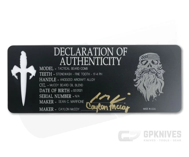 Comes with: custom storage box, fleece lined zippered storage pouch, microfiber bag, The Real McCoy Beard Oil “Coin” & Celtic Fire beard oil and steel “Declaration of Authenticity” info card.