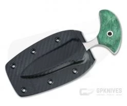 The custom Mike Irie Version 3 Push Dagger has a utilitarian single edge drop point blade combined with unmatched fit and finish for a truly handmade custom piece. Sleek, smooth lines, performance driven high quality materials and meticulous hand finishing are standard, giving this push dagger optimal performance and collector appeal. This version has a hand rubbed satin CPM-154 blade and stabilized dyed green maple wood scales.