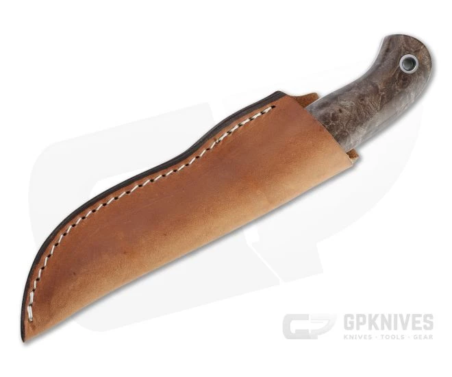 Handle: Simple and ergonomic, the stabilized maple wood scales and classy black linen Micarta bolsters are fully contoured for a hand filling handle that is comfortable in nearly any grip. A subtle guard, generous palm swell and bird’s beak pommel help secure the knife in hand while still allowing for good maneuverability. This piece comes with stabilized maple burl wood handles for a handsome look.