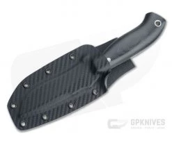 Carries via a 3-layer carbon fiber textured Kydex sheath with integral belt loop and eyelets.