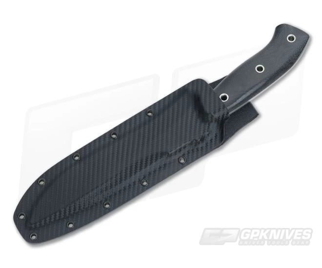 Carries via a custom Kydex sheath with belt loop and carbon fiber textured front.