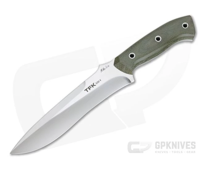 Mike Irie’s custom TFK or Tactical Field Knife is a lesson in badassery. This is a fixed blade tactical knife built to handle whatever you might find in your way. With an aggressive demeanor and killer good looks, the TFK will get you where you need to go. This version comes with a hand rubbed satin, S30V blade and Green Canvas Micarta handles.