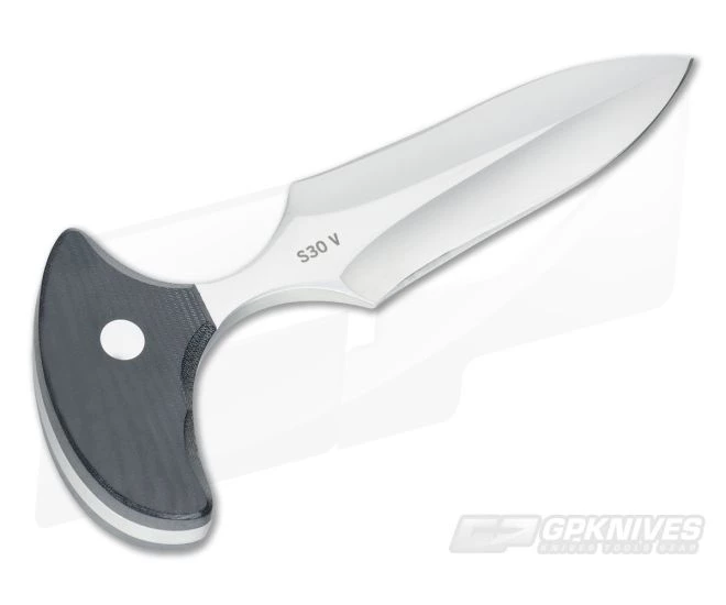 The Blade: Ground from a single tang of premium S30V stainless steel, this Mike Irie Version 2 Double Edged Push Dagger has wicked appeal. At nearly a quarter inch thick the tang forms the dagger shaped blade, sharpened to a razor edge on both sides and horizontally hand rubbed for a satin finish.