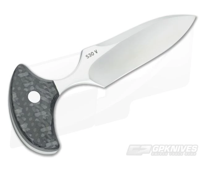 The Blade: Ground from a single tang of premium S30V stainless steel, this Mike Irie Version 3 Single Edged Push Dagger has wicked appeal. At nearly a quarter inch thick the tang forms the dagger shaped blade, sharpened to a razor edge on one side with faux upper swedge and horizontally hand rubbed for a satin finish.