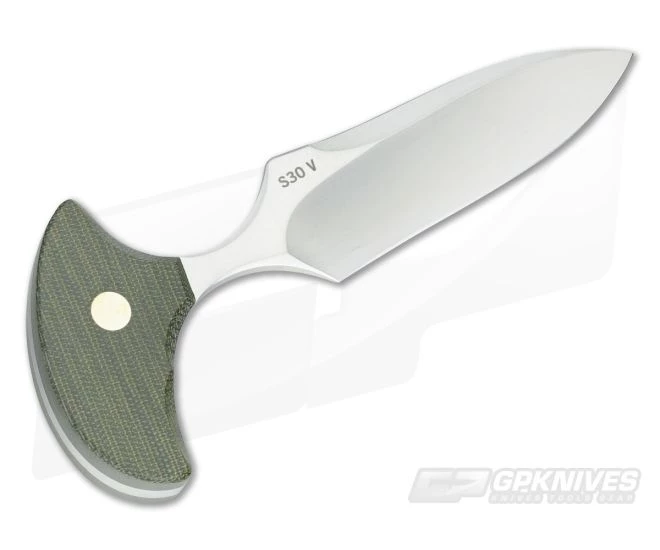 The Blade: Ground from a single tang of premium S30V stainless steel, this Mike Irie Version 3 Single Edged Push Dagger has utility appeal. At nearly a quarter inch thick the tang forms the dagger shaped blade, sharpened to a razor edge on one side with faux upper swedge and horizontally hand rubbed for a satin finish.
