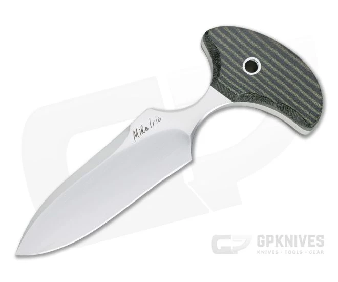 The Custom Mike Irie Version 3 Push Dagger offers an expertly executed single hollow ground blade combined with peerless fit and finish in this handmade custom piece. Precision hand finished as is Mike’s standard, this push dagger features sleek, smooth design lines and high quality materials for optimal performance. This version comes with a CPM-154 blade and Green and Black Linen Micarta handle scales.