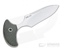 Blade: Ground from a single piece of American CPM-154 stainless steel, this Mike Irie Version 3 Single Edged Push Dagger is functional for utility or defensive use. At nearly a quarter inch thick the tang transitions seamlessly into the drop point blade, sharpened to a razor edge on one side with a nearly full length top swedge and horizontal hand rubbed satin finish.