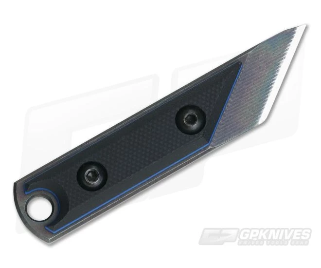 The Handle: A single solid piece of Black G10 with a thin, Blue Liner is mounted to one side of the knife with two black Allen head bolts. The scale and blade tang are chamfered to offer a surprisingly comfortable and secure grip on this diminutive cutting tool. The “Thin Blue Line” liner is a symbol of solidarity and support for NYPD and Police Officers everywhere.