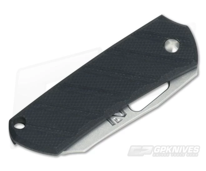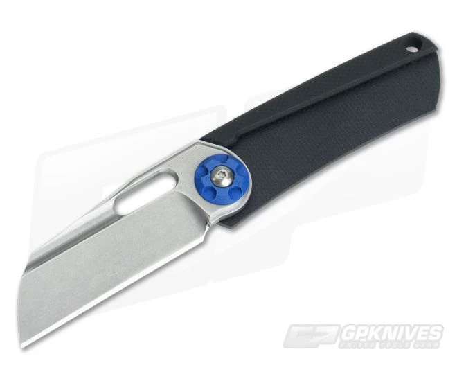 The Handle: A single solid piece of Black G10 comprises the scale and backspacer which doubles as an edge cover in the closed position. The scale is milled with diagonal grooves for added texture and includes a hole for lanyard attachment. The construction is completed with smooth, phosphor bronze washers and a milled, Blue G10 pivot collar and Torx pivot.