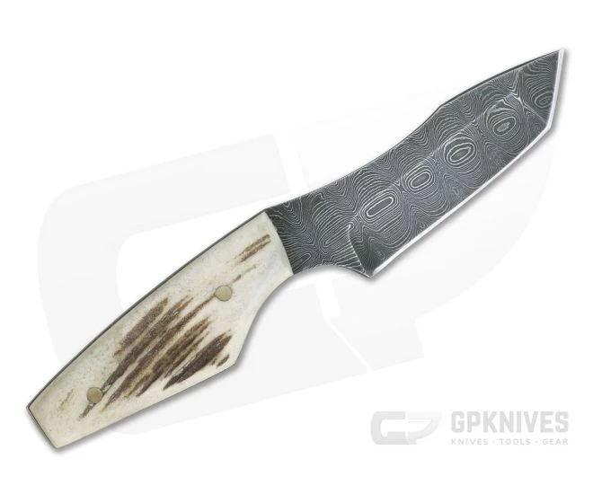 The Olamic Tanto Necker is a lightweight, comfortable and purpose-built backup perfect for EDC. Just over 5.5 inches long this pieces has a single edge, Tanto point Damascus blade, rugged Stag handle scales and high quality leather sheath.