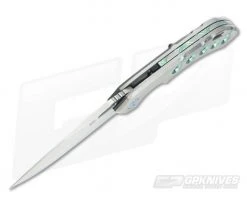The Blade: A Hybrid drop-style blended blade is made from premium M390 stainless steel for all-around utility cutting. A long swedge gives the blade a fine, piercing point and the Satin finish is classy, clean and refined. The blade rides on bearings for outstanding action via an integral flipper tab which acts as a guard when open.