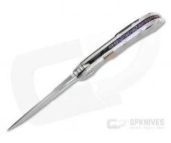Handle: The ergonomic Ti handle design locks the knife into the hand for secure use and all the edges are contoured to reduce hot spots. The handles have been given a high-end Jeweled finish that is highlighted by a 3-dot Dragonskin inlay pattern with Dragonskin stripe. The titanium frame lock has a steel lock face insert that holds the ceramic detent ball and has a tab that doubles as an over-travel stop. A purple ano “Nugget” floating titanium backbar has “WAYFARER 247T” and the serial number “T133T” on the inside. A nice lanyard hole cutout is included on the back of the handle along with purple/blue ano titanium hardware matching the color scheme. Includes an Olamic soft sided zipper pouch, Olamic pivot tool and certificate of authenticity.