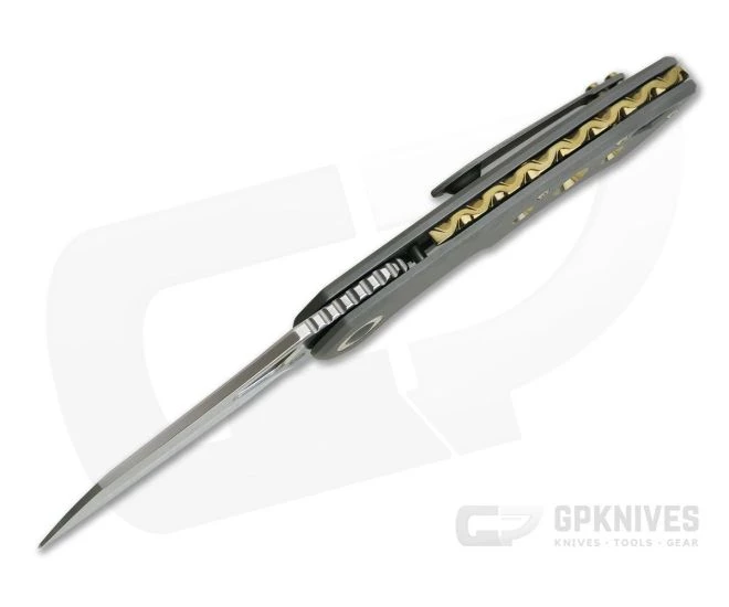Designed by A. Kolesnikov, the Olamic Cutlery Whippersnapper is a followup to the popular Busker front flipper. Offering a more full size platform, the Whippersnapper retains the same top flipper design along with the premium materials, exceptional build quality and unique design and aesthetic for which Olamic Cutlery is known. Compact and elegant in design, the Whippersnapper is an excellent choice for everyday carry in any environment with a size that is easy to carry yet up to nearly any task. This version comes with a Satin, CPM-20CV Wharncliffe blade, Dark Blast titanium handles with Bronze Anodized Three Hole milling and Dark Blast clip.