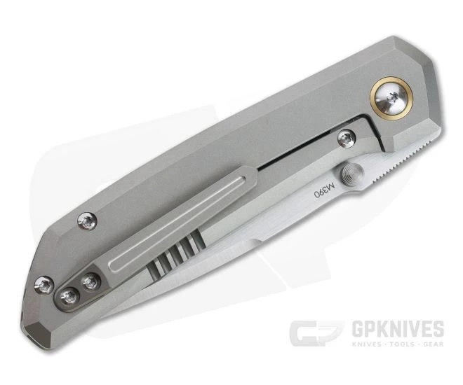 Blade: The Mula offers just under 3 inches of razor sharp cutting edge on a utilitarian drop point blade. Made from premium, Bohler M390 stainless steel the blade has a top swedge that tapers the blade to a fine yet durable point for piercing while the mid-height saber grind balances durability with slicing performance. A short section of jimping on the thumb ramp offers added traction and indexing. Dual titanium thumb studs allow for ambidextrous deployment which is fast, smooth and decisive thanks to the caged ceramic ball bearing pivot riding on hardened stainless steel washers. Bronze anodized pivot collars lend a pop of color while the bi-directional satin finish lends the Mula a high-performance, custom feel.